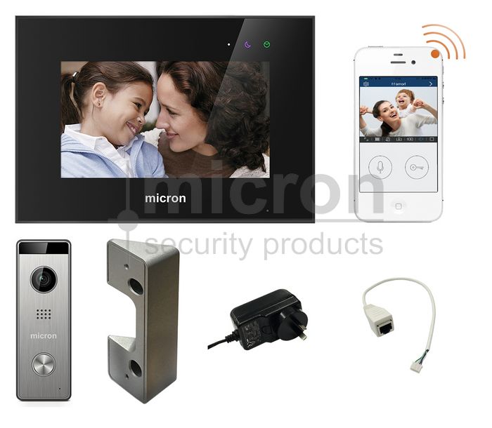 Micron BLACK WiFi Residential Intercom Kit 7" Touch Screen Kit With Memory. Includes Surface Door Station & Power Supply