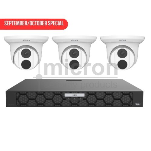 Oct/Nov Special**8ch IP Kit - 8ch 5 Series NVR ***FREE UPGRADE to 4TB***, 3 x 6mp Easy Star Turret With Audio
