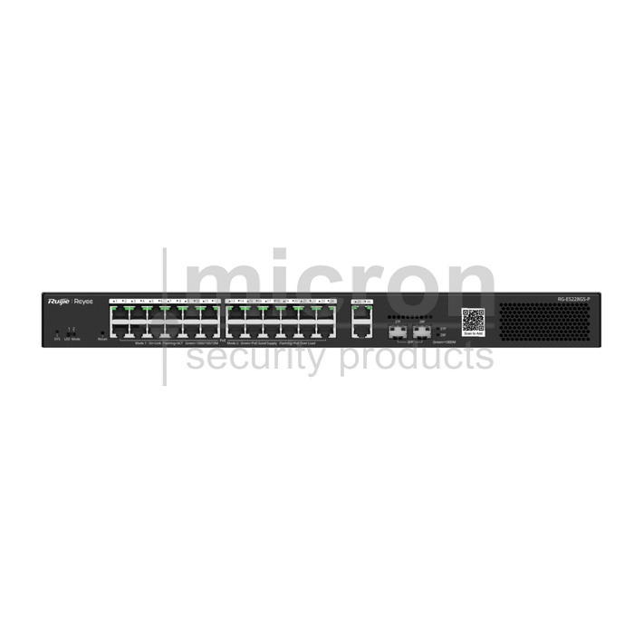 RG-ES228GS-LP Managed 24 Port POE Switch. Additional 2 x Gigbit UPLINK 2 x SFP Uplink Ports 250W