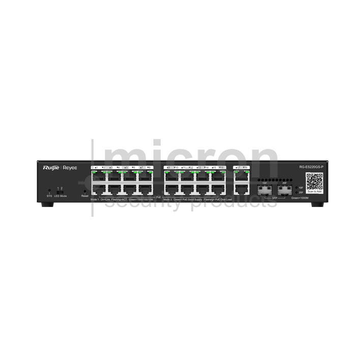 RG-ES220GS-LP Managed16 Port POE Switch. Additional 2 x Gigbit UPLINK 2 x SFP Uplink Ports 130W